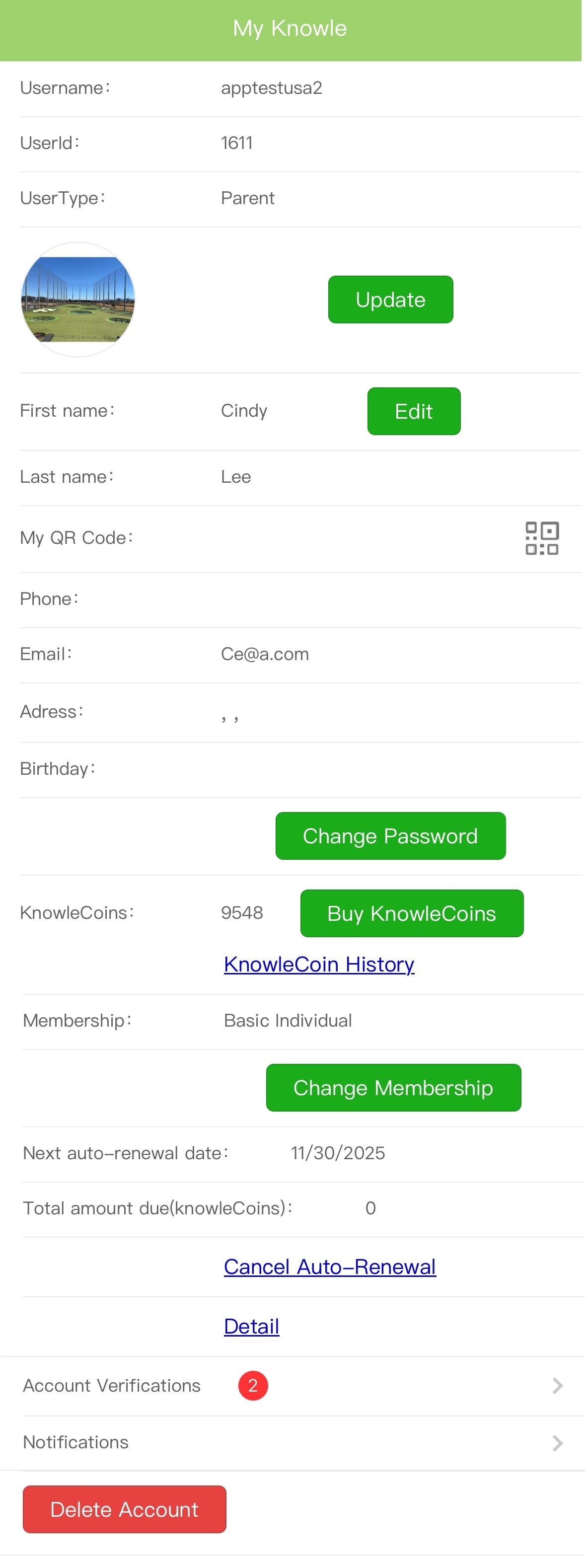 j. Notifications: You can change the settings for each Email or Phone push notifications.